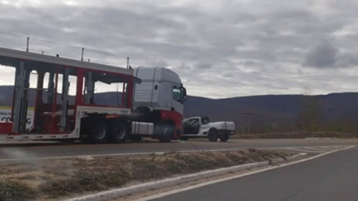 Segundo a Polícia Rodoviária Federal (PRF), o acidente aconteceu por volta das 6h20, quando a caminhonete tentou cruzar a pista e foi atingida pela carreta. Com a força do impacto, o veículo foi arrastado por vários metros.