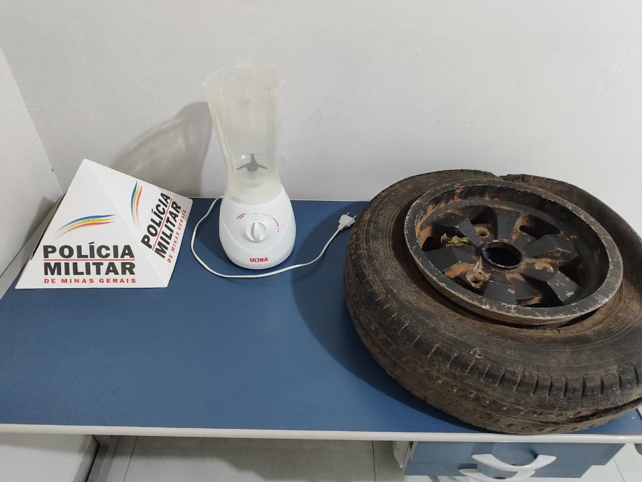 O homem, de 29 anos, não foi localizado. O pneu, o liquidificador e o botijão de gás foram recuperados.