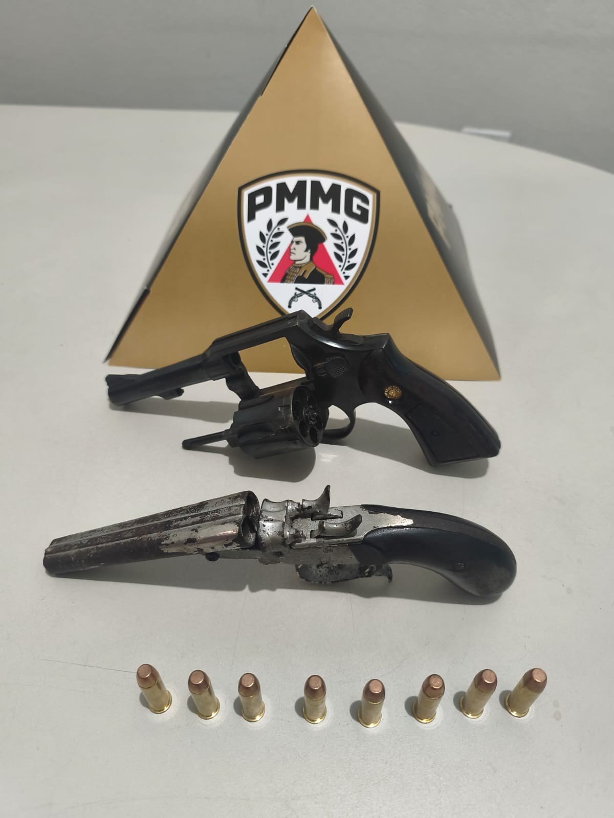Ainda durante a ocorrência, a PM informou ao homem que a corporação havia sido avisada de que ele teria armas em casa. Demonstrando nervosismo, ele permitiu que fossem realizadas buscas no local. No congelador, dentro de uma mochila, foram apreendidos um revólver, uma garrucha e munições.