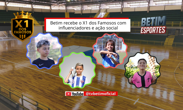 → Betim vai reunir influencers de várias partes do Brasil para um evento esportivo, de lazer e solidário: o X1 dos Famosos, que acontece neste sábado (6), a partir das 16h, no Ginásio Poliesportivo Divino Braga. Realizada pela primeira vez na cidade e no Estado, a competição, que tem o apoio da Prefeitura de Betim, através da Secretaria Municipal de Esportes,  contará com a presença de criadores de conteúdo digital da categoria esportiva de futebol X1, que se reunirão para disputar partidas emocionantes.
