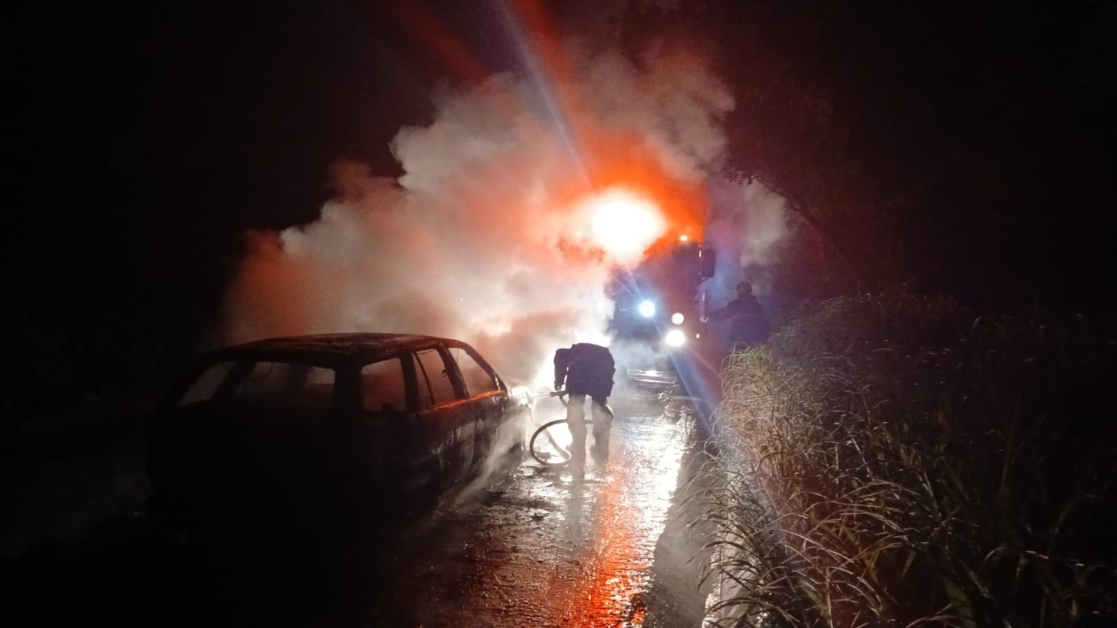Os bombeiros combateram um incêndio em um carro na MGC-451, em Olhos D’ Água, na noite deste domingo (1º).
