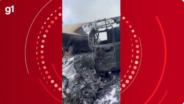 Segundo o Corpo de Bombeiros, o motorista contou que perdeu o controle da direção após ouvir um forte estouro, momento em que o veículo foi puxado para um dos lados. Em seguida, a carreta saiu da pista, tombou em uma ribanceira e pegou fogo.