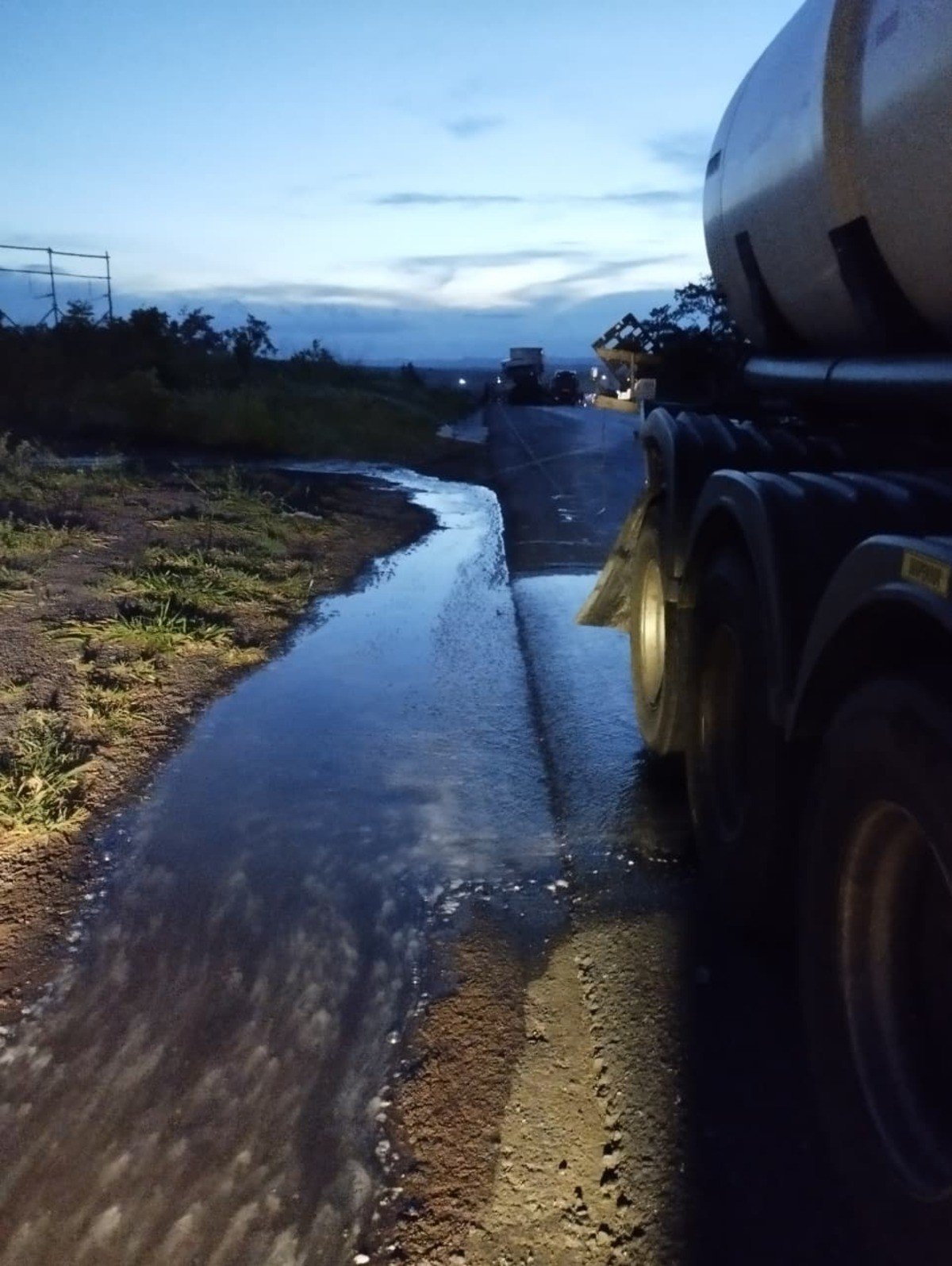 O Núcleo de Emergências Ambientais foi acionado, e um representante de uma empresa especializada acompanhou os trabalhos, permanecendo no local até a chegada de um caminhão de descontaminação vindo de Belo Horizonte.