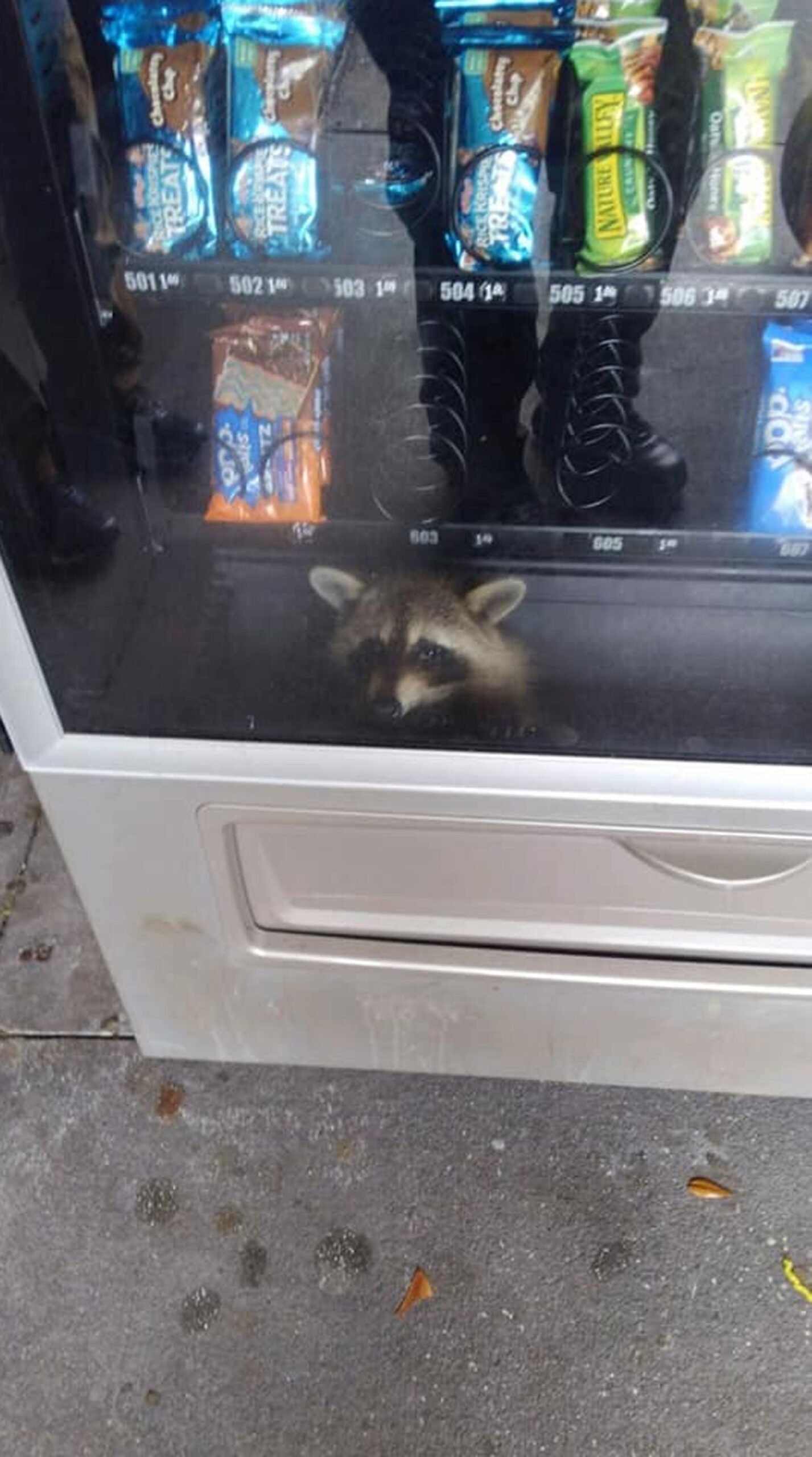 Guaxinim ‘assaltante’ fica preso em máquina de venda de lanches nos EUA