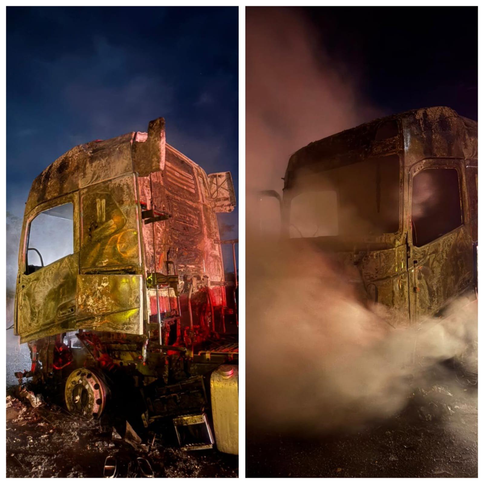Em seguida, o condutor conseguiu desacoplar a carreta, fazendo com que o incêndio ficasse concentrado apenas no cavalo mecânico.
