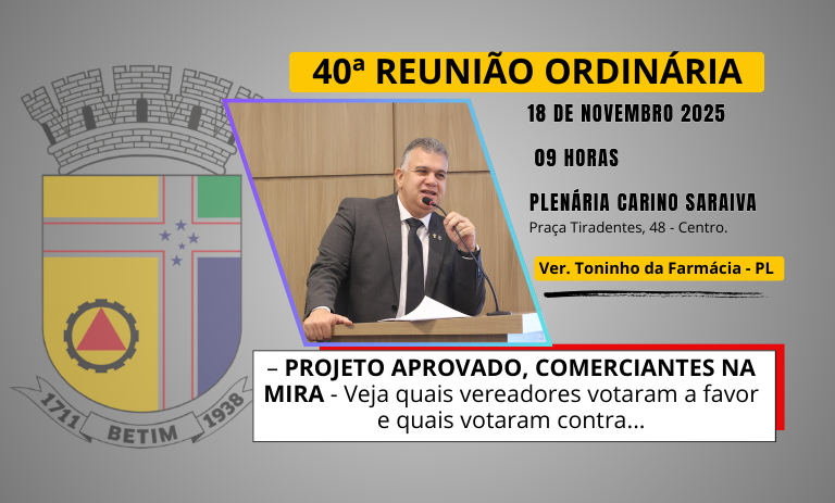 Em discurso na tribuna, o vereador Toninho da Farmácia (PL) justificou seu voto contrário destacando o impacto da medida sobre o setor comercial. Segundo ele, apesar dos avanços incorporados ao texto, a carga tributária sobre os comerciantes permanece elevada.