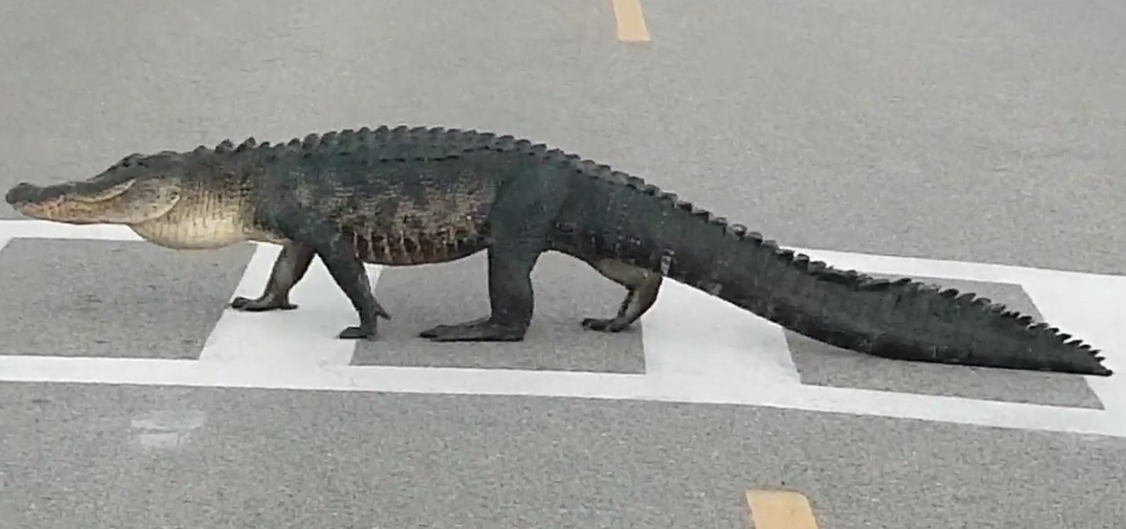 Jacaré atravessa rua usando faixa de pedestres nos EUA
