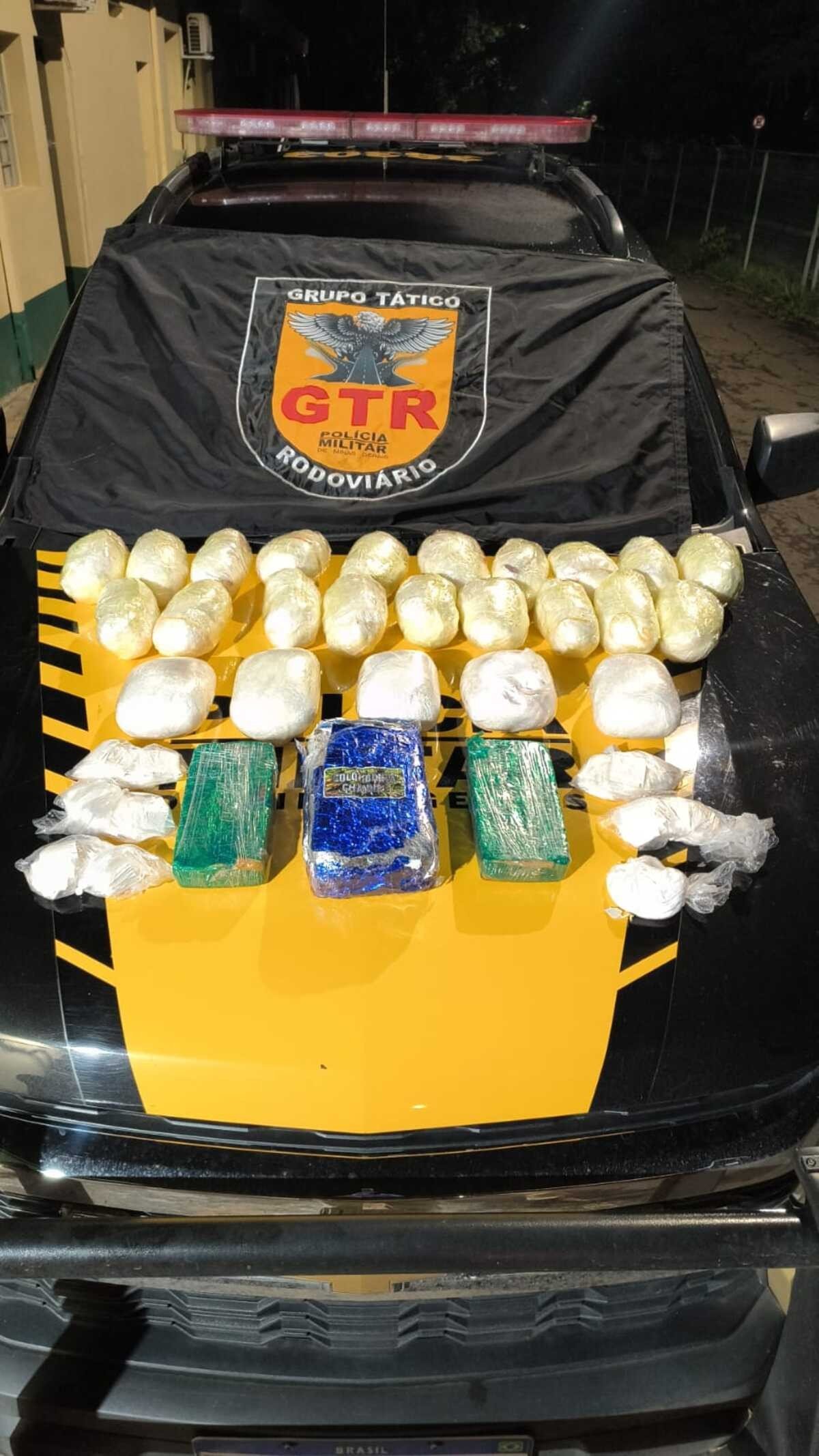 A Polícia Militar apreendeu uma grande quantidade de drogas em um ônibus na LMG-653, em Montes Claros, na noite desta quinta-feira (9).