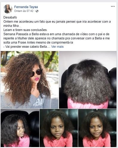 A postagem da mãe trazia fotos de antes e depois do procedimento, mostrando a diferença entre a atitude da menina quando possuía cachos e a tristeza após os mesmos terem sido alisados. A mensagem de Fernanda viralizou nas redes sociais e teve mais de 325 mil curtidas e 101 mil compartilhamentos.