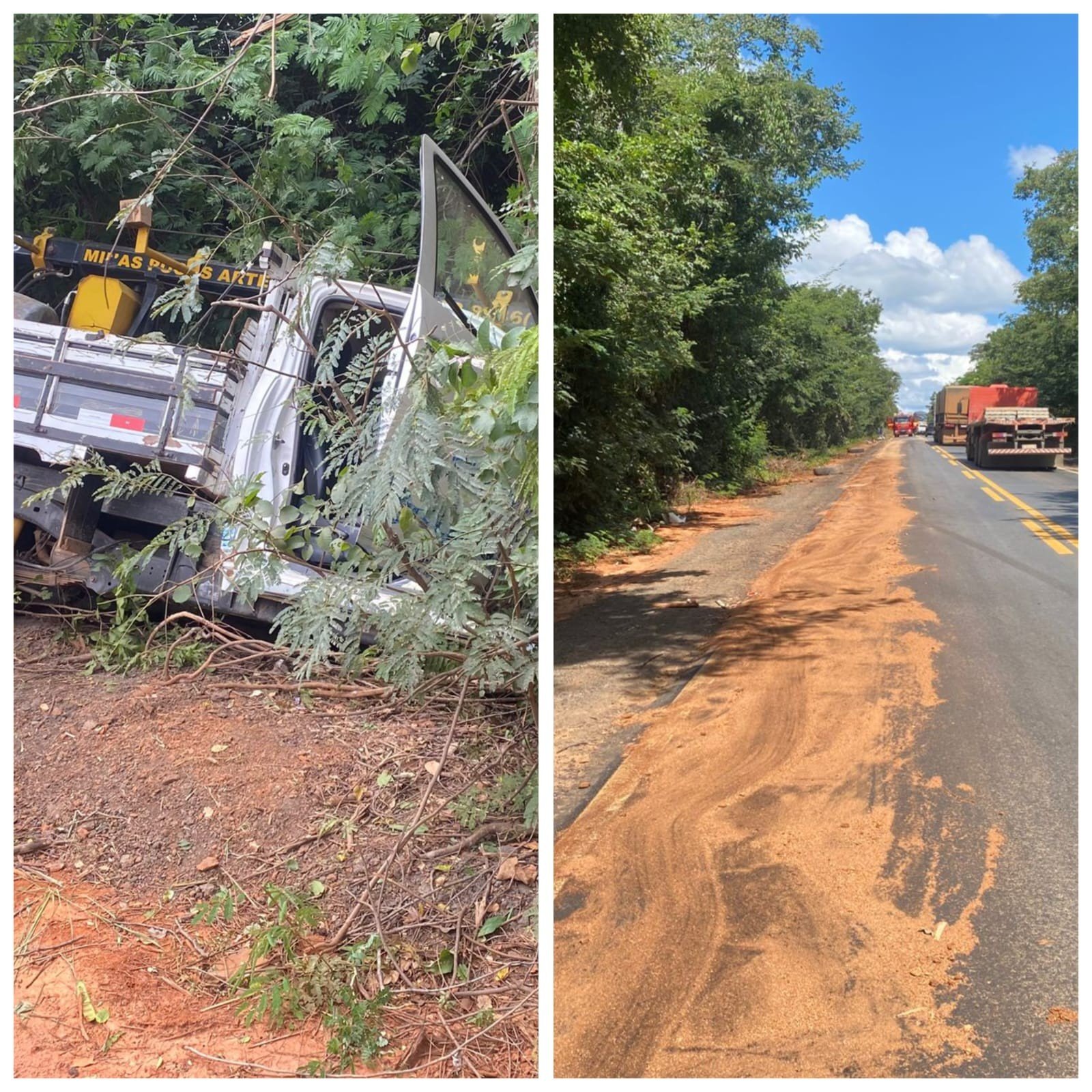 Houve derramamento de óleo na pista, proveniente de um dos caminhões envolvidos, sendo necessária a aplicação de serragem para eliminar o risco de derrapagem.