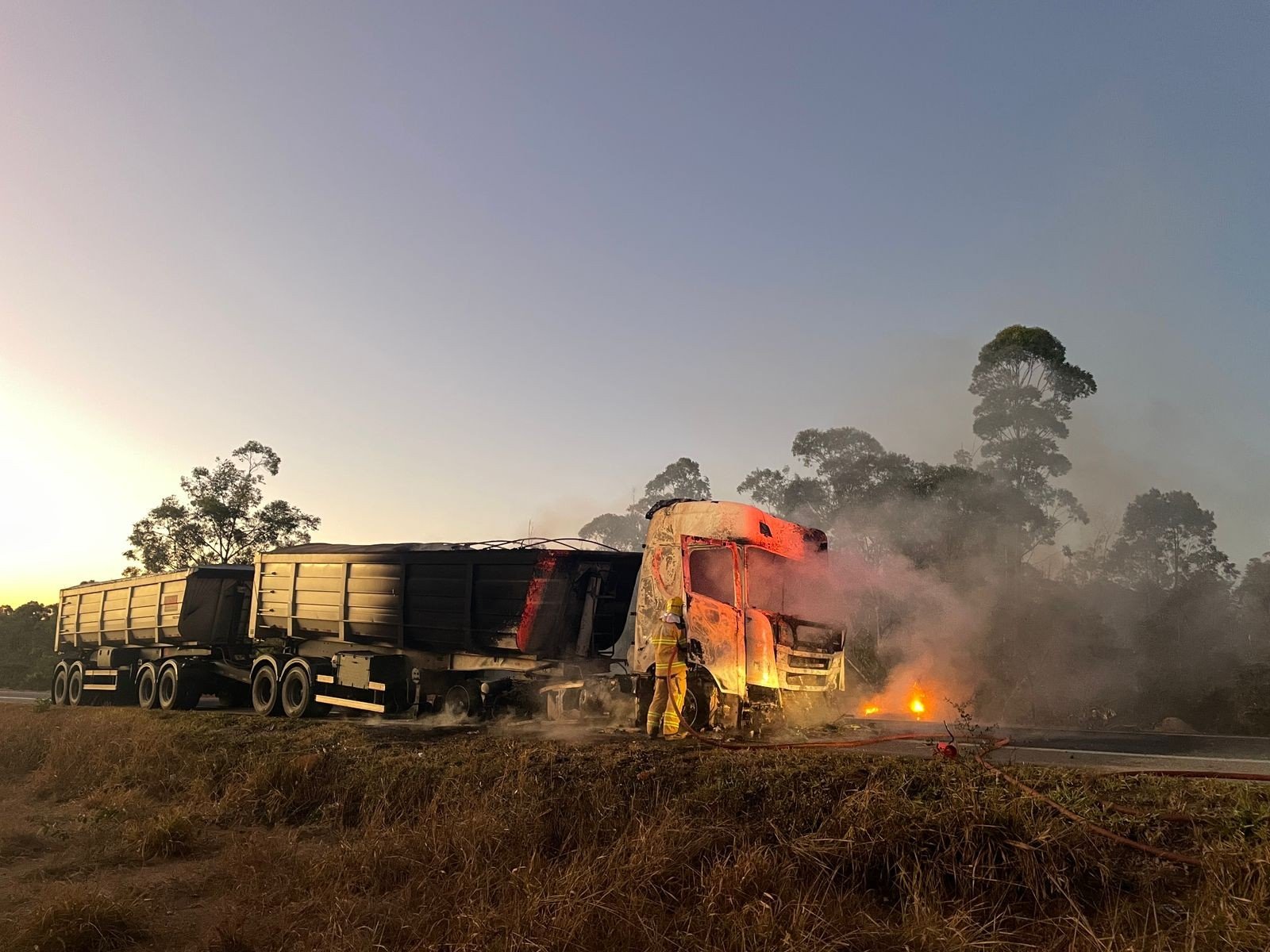 Motorista e irmão escapam ilesos de incêndio que danificou carreta na BR-251