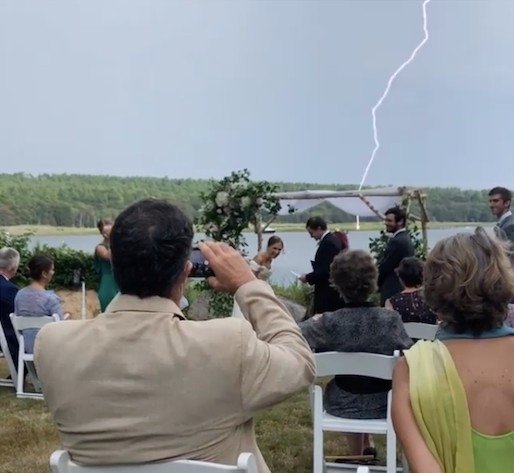 Momento em que raio cai a metros de local onde casal fazia votos em cerimônia de casamento nos EUA