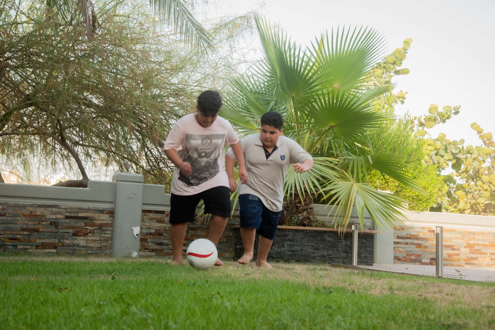Crianças com sobrepeso jogam bola