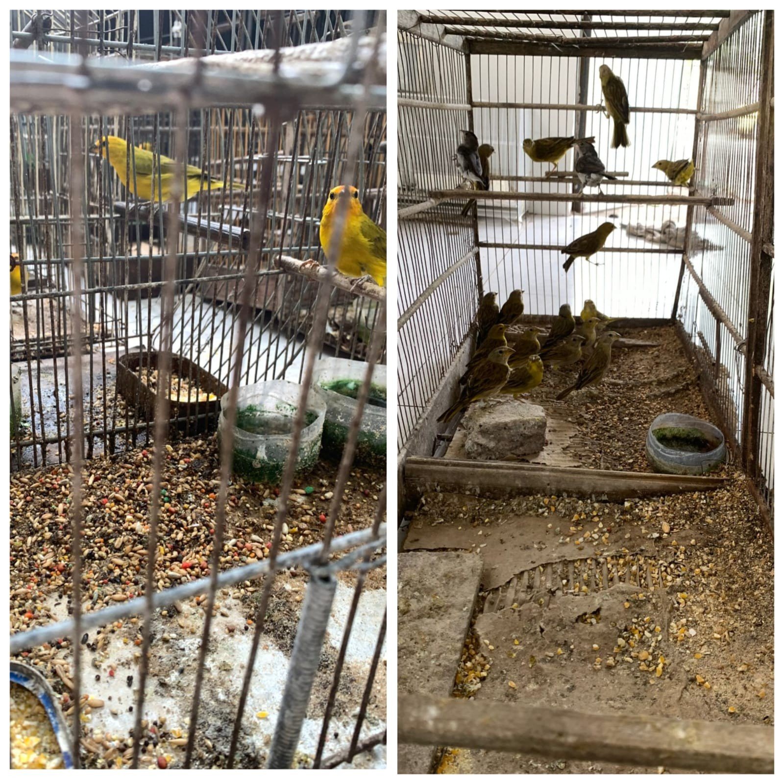 “Os pássaros estavam em condições de maus-tratos, em gaiolas sujas, com fezes, comida velha e sem água. Ao todo, foram apreendidas 81 gaiolas”.