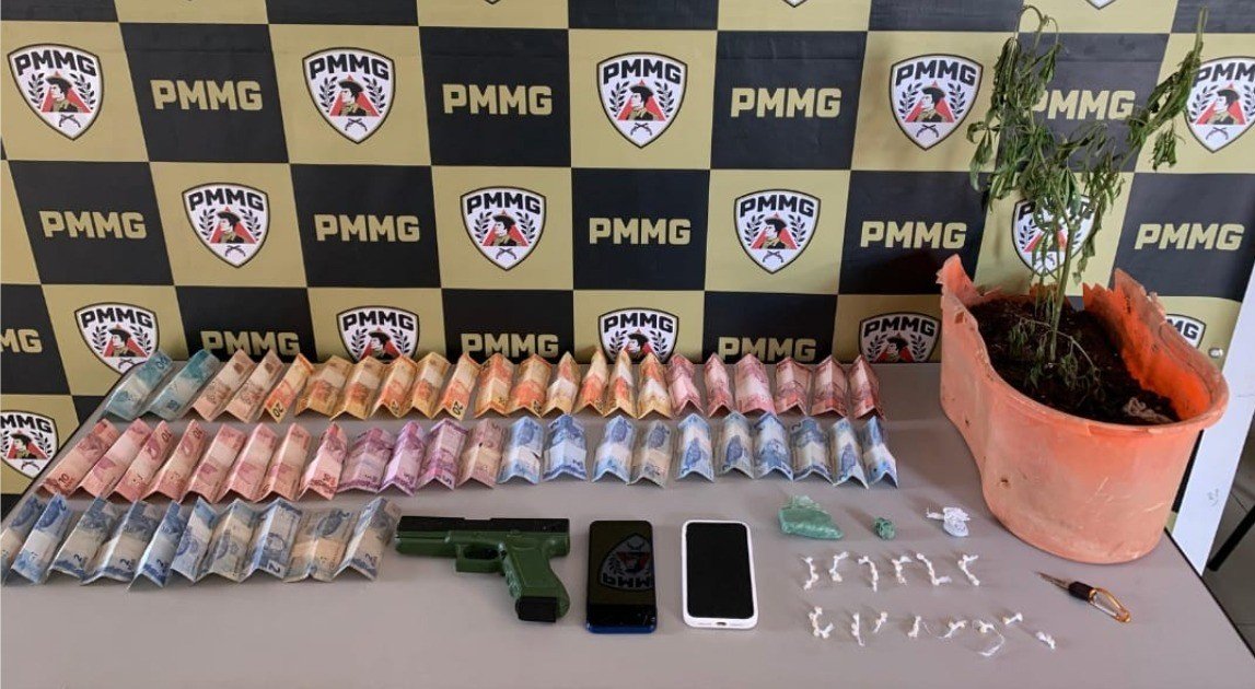 Conforme a PM, durante buscas, os militares encontraram maconha, crack e dinheiro. A réplica de pistola estava em cima de uma guarda-roupas. Celulares também foram apreendidos durante a ocorrência.