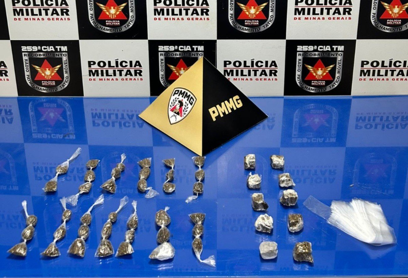 Uma mãe que afirmou não concordar com a postura do filho confirmou à Polícia Militar que ele estava fracionando drogas e fugiu ao se deparar com a chegada da equipe na casa onde eles moram, em Pirapora, nesse domingo (22).