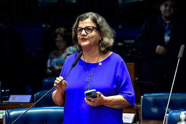 A senadora Teresa Leitão (PT-PE) tropeçou, caiu e bateu a testa no plenário do Senado na tarde desta terça-feira (4). O presidente, Davi Alcolumbre (União-AP), suspendeu a sessão.