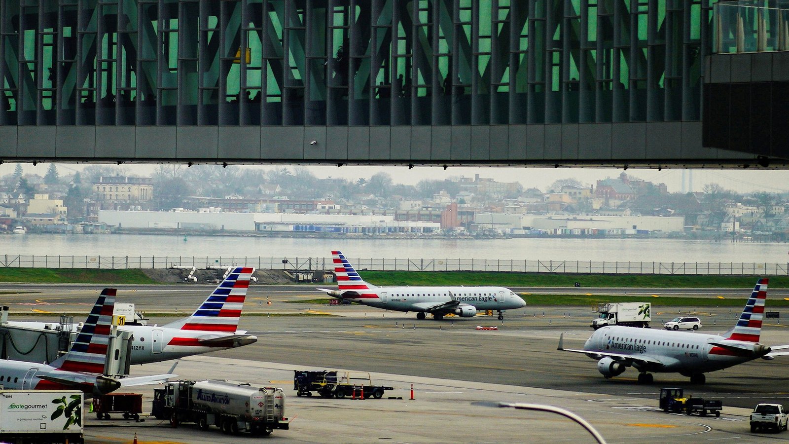 Aviões estacionados no aeroporto de LaGuardia, em Nova York — Foto: Reuters