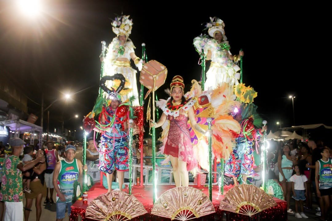 Com mais de 100 integrantes, o Bloco Comercial foi o primeiro a entrar na passarela do samba, reforçando a força e a tradição do carnaval local. Em seguida, o Bloco do Burrão levou para a avenida uma alegoria com o tema da diversidade e da inclusão.