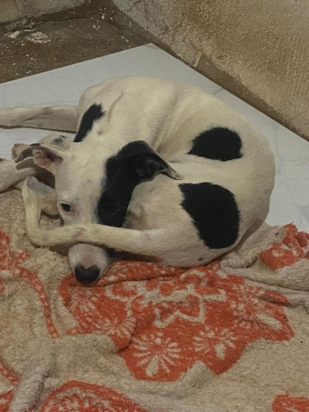 A cadela está sob cuidados de protetores e será encaminhada para a adoção quando estiver em condições.